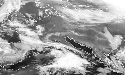 Heute noch sorgt Hoch 'Leia' für einen fast wolkenfreien Himmel über Deutschland. Auf dem Satellitenbild von Sonntagmorgen erkennt man aber schon die nächsten Tiefausläufer von Westen und Süden heranziehen. Sie werden in den kommenden Tagen unser Wetter bestimmen. Über dem Mittelmeer sind schon heute kräftige Schauer, zum Teil auch Gewitter zu erwarten.