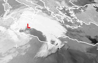 Die dichten Wolken gehören zu einem kräftigen Tief über dem Mittelmeer. Dieses Tief sorgt heute für teils kräftige Schauer oder Gewitter und starken Wind vor allem an der Mittelmeerküste von Tunesien und Libyen, aber auch auf Sizilien und Malta. (Bildquelle: NERC Satellite Receiving Station, Dundee University, Scotland, http://www.sat.dundee.ac.uk/)