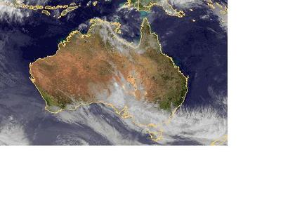Auf dem Satellitenbild von Samstag früh sind im Südosten von Australien dichte Wolken zu erkennen. Hierfür sorgt eine Luftmassengrenze, die heiße Luft aus dem Norden von kühlerer Luft aus Süden trennt. Die hierbei entstehenden Wolken bringen teils kräftige und ergiebige Regenmengen in den Südosten. Sonst ist es meist heiter und trocken.