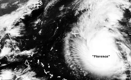 Das Tropische Tief 'Florence' ist nun zum Hurrican heraufgestuft worden. Dabei weist er momentan mittlere Windgeschwindigkeiten um 130km/h auf, soll sich aber noch weiter verstärken. 'Florence zieht nun weiter Richtung Neufundland, wird sich dann aber, wenn er diese Region erreicht hat, weiter abgeschwächt haben, da er hier in kühlere Gewässer zieht.