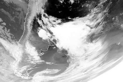 Die Kaltfront eines Tiefs über dem Südpolarmeer ist über Agentinien nach Nortden gezogen. Auf ihrer Vorderseite haben sich teils kräftige Gewitter in Nordargentineen und Uruguay gebildet, die zu einem ausgedehnten Wolkenschirm geführt haben. (Bildquelle: NERC Satellite Receiving Station, Dundee University, Scotland, http://www.sat.dundee.ac.uk/)