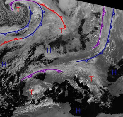 Hoch 'Quennie' liegt heute über den Britischen Inseln und sorgt für größere Wolkenlücken bis etwa zum Baltikum. Sonst bestimmt meist Tiefdruckeinfluss das Wettergeschehen in Europa. Dabei zeigen sich am westlichen und zentralen Mittelmeer einige Schauer- und Gewitterwolken. Tiefausläufer finden sich auch von der Biskaya über die Alpen und bis zum nordwestlichen Russland. Ein größeres Tiefdrucksystem über dem Atlantik wird auf seinem weiteren Weg nach Westen von Hoch 'Queenie', das sich deutlich verstärkt, auf eine nördliche Bahn gezwungen, sodass Mitteleuropa häufig ruhiges Spätsommerwetter erwarten kann.