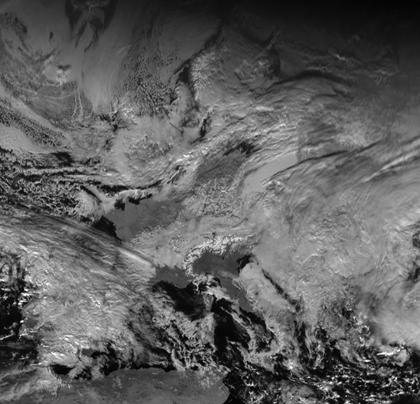 Hochdruckeinfluss bestimmt das Wetter in Norditalien, Frankreich und Deutschland. Dabei ist es aber nur gebietsweise sonnig, zum Teil, wie etwa in Ostfrankreich und Süddeutschland hält sich bei eher feuchter Luft eine dichte Wolkendecke. In den anderen Teilen Europas hat aber auch Tiefdruckeinfluss für Entstehung verbreitet dichter Wolkenfelder gesorgt.