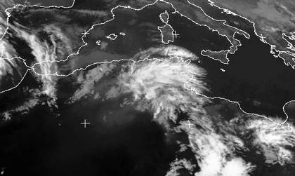 Der Ausschnitt zeigt Quellbewölkung über der Sahara. Sie entsteht in einem Gebiet relativ kalter Luft, das im Zuge eines Kaltluft-Vorstoßes aus Norden übriggeblieben ist. Durch die starke Sonneneinstrahlung bilden sich zum Teil kräftige Schauer oder Gewitter.