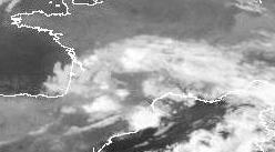 Auf dem Satellitenbild von Donnerstag früh sind über den Pyrenäen teils dichte Wolken zu erkennen aus denen sich einige hellweiße Flecken hervorheben. Diese Flecken sind hochreichende Wolken in denen sich Gewitter bilden.