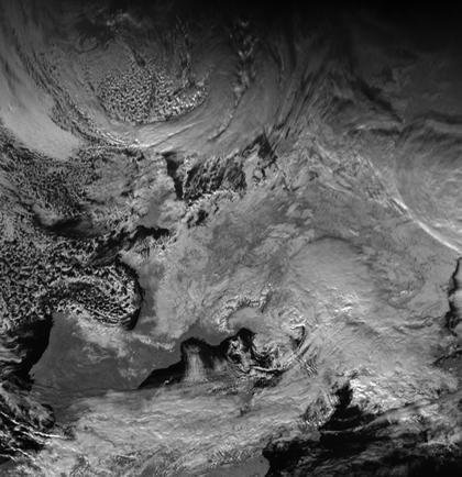 Hochdruckeinfluss sorgt für teils nur wenige Wolken in Mitteleuropa, gebietsweise gibt es aber auch dichtere Wolkenfelder. Die Wolken sind jedoch im Satellitenbild vom verbreitet liegenden Schnee zum Teil nur schwer zu unterscheiden. Über der Adria liegt ein kräftiges Tief, das viele Wolken und teils starken Regen oder auch Gewitter bringt. Über der Nordsee nähert sich unterdessen bereits ein Ausläufer von Tief 'Vincent' mit seinen Wolken, der am Sonntag nach Deutschland zieht.
