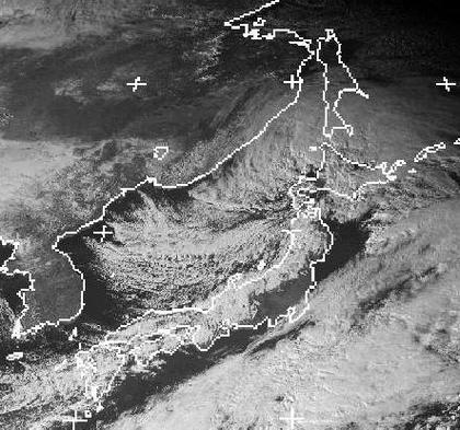 Ein Sturmtief über Sachalin lenkt mit einem stürmischen Wind von Ostsibirien Kaltluft über das Japanische Meer nach Japan. Über dem Meer bilden sich dabei Schneeschauer, sie bringen vor allem der Nordseite der japanischen Gebirge erhebliche Neuschneemengen. Im Norden Japans schneit es aber auch im Flachland, weiter im Süden regnet es. (Bildquelle: NERC Satellite Receiving Station, Dundee University, Scotland, http://www.sat.dundee.ac.uk/)