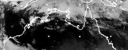 Im Norden von Australien zeigen sich speziell in Küstenbereich teils dichte Wolken, die örtlich für kräftige Schauer und Gewitter sorgen. Die Luft ist bei Temperaturen um 30°C teils sehr schwül und sehr warm. Wenige 100km südlich der Küste herrscht dagegen bei meist wolkenlosem Himmel und ähnlichen Temperaturen trockenes Wetter.