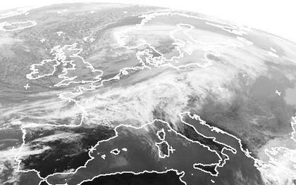 Über Südskandinavien liegt das Sturmtief 'Britta'. Seine Kaltfront erstreckt sich von Südschweden über NOrddeutschland bis zur Bretagne. Auf ihrer Vorderseite liegt in warmer Luft meist höhere Bewölkung, auf ihrer Rückseite strömt in kalter Luft Schauerbewölkung nach Süden.