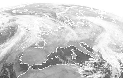 Tief 'Dietmar' liegt über der südlichen Ostsee. Seine Wolken erstrecken sich bis zu einem Tief über Südosteuropa. Die Wolken über Deutschland ziehen aber nach Osten ab. Jedoch zieht zugleich von Westen neue Bewölkung auf. Sie gehört zum Tief 'Eberhard' westlich von Schottland. Es bringt später auch Regen und teils Sturmböen. (Bildquelle: NERC Satellite Receiving Station, Dundee University, Scotland, http://www.sat.dundee.ac.uk/)