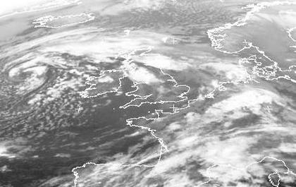 Tief 'Laila' liegt zwar westlich von Irland über dem Nordatlantik, seine Ausläufer bestimmen jedoch das Wetter in großen Teilen von Deutschland. Man erkennt deutlich die Okklusion die sich von Schottland bis zur Nordsee erstreckt. Die Kaltfront führt in einem Bogen weiter entlang der französischen Kanalküste bis zur Bretagne. Auch hoch reichende Regenwolken im Warmsektor über den Mittelgebirgen sieht man deutlich, die Warmfront über Mecklenburg-Vorpommern ist dagegen kaum zu erkennen.