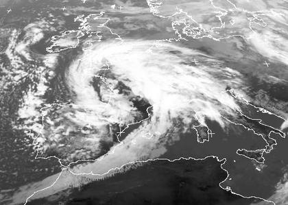 Über Südwestfrankreich liegt der Kern von Tief 'Steffi', dessen Wolkenspirale sich von den Britischen Inseln bis nach Nordafrika erstreckt. Am Mittelmeer bringt es auch Gewitter. Die Wolken auf der Ostseite des Tiefs ziehen weiter nach Deutschland, wo sie in der Nacht und morgen Regen, im Norden auch Schnee bringen.