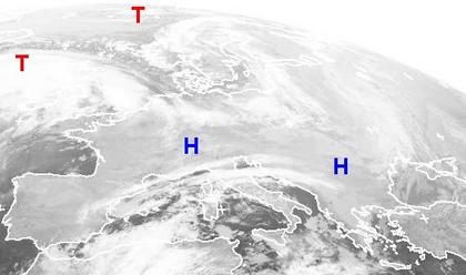Die Ausläufer der Tiefdruckgebiete 'Yvonne' westlich von Norwegen und 'Zhara' westlich von Großbritannien bringen Regen oder Schauer und teils stürmischen Wind vor allem in den Norden Europas. Sonst sorgt Hockdruckeinfluss für meist freundliches und ruhiges Wetter. (Bildquelle: NERC Satellite Receiving Station, Dundee University, Scotland, http://www.sat.dundee.ac.uk/)