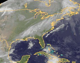 Der ausgeprägte Ausläufer eines Tiefs über Ostkanada streckt sich mit seinen Wolken über den Osten der USA bis an die texanische Golfküste. In seinem Bereich kommt es zu teils kräftigem Regen mit teils auch kräftigen Gewittern. Von Norden folgt auf seiner Rückseite jedoch ein Bereich kühlerer, aber wolkenarmer und trockener Luft.