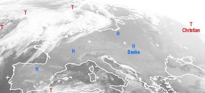 Auf dem Satellitenfoto von heute früh zeigt sich eine breite Hochdruckbrücke mit vielfach wolkenlosem oder nur gering bewölktem Himmel von Portugal, über Spanien, Frankreich, Deutschland und weiter nach Osten bis nach Südosteuropa. Besonders viele und dichte Wolken sind unter Tiefdruckeinfluss im Nordwesten Europas auszumachen. Hier kommt es verbreitet auf einer Linie von Irland, über Schottland, die Nordsee bis nach Skandinavien und Westrussland zu anhaltenden meist aber leichten Niederschlägen. Im Mittelmeerraum liegen nur noch schwache Tiefdruckgebiete, die besonders in der südlichen Adria sowie im westlichen Mittelmeer örtlich für Schauer sorgen können. Zumeist bleibt es aber trocken.