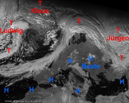Auf dem heutigen Satellitenfoto zeigen sich Tiefdruckgebiete mit ihren Ausläufern vom Norden der Iberischen Halbinsel, über den Nordwesten Frankreichs, Großbritanien, Skandinavien und weiter bis nach Osteuropa, hier kommt es bei vielfach dichter Bewölkung wiederholt zu Regen oder auch teils kräftigen Schauern. Unter Hochdruckeinfluss bleibt es in weiten Teilen Mitteleuropas und im südlichen Europa weitgehend trocken und vielfach auch sehr sonnig.
