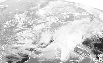 Das Tief 'Orkun' über der Ostsee hat seine Kaltfront bis nach Norditalien gelenkt, wo sich das neue Tief 'Paul' gebildet hat. Weiter nach Norden strömt von Nordwesten feucht-kühle Luft ein, in der sich wechselnde Schauerbewölkung gebildet hat. (Bildquelle: NERC Satellite Receiving Station, Dundee University, Scotland, http://www.sat.dundee.ac.uk/)