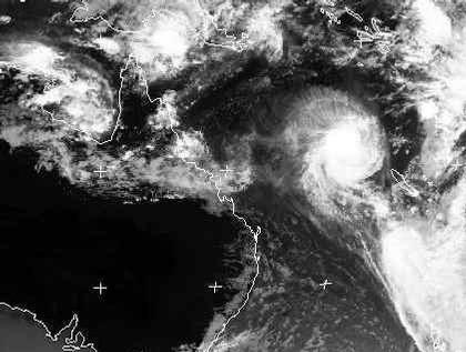 Der Ausschnitt zeigt den Wirbelsturm 'Kerry'. Es hat sich in der feucht-warmen Luft südlich vom Äquator aufgebaut und nach den neuesten Berechnungen entwickelt sich in den nächsten Tagen zu einem Taifun. Zur Zeit liegt er über dem Korallen-See und bewegt sich unter Verstärkung nur langsam südwestwärts, sein Endziel ist noch unklar. Nahe dem Auge erreicht die Windgeschwindigkeit in Böen bis zu 165 km/h.