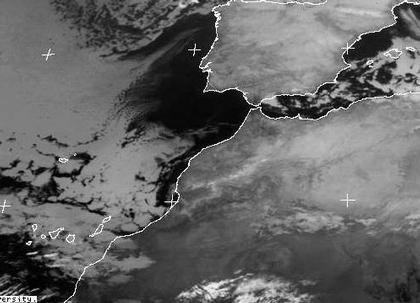 In Spanien erkennt man am Freitagmorgen größtenteils wolkenarmes, aber helles, sehr kaltes Land. Der nordöstliche Wind lässt die erst noch trockne Kaltluft auf den relativ warmen Atlantik hinausströmen. Dabei reichert sie sich allmählich mit Feuchtigkeit an und bildet in gehörigem Abstand zum Land erste Quellwolken. Sie verbinden sich schnell zu einer gleichmäßig grauen Wolkendecke. Erst bei Madeira und den Kanaren reißen die Wolken wieder etwas auf und bilden Schauer. Vor allem an den Nordostseiten der Inseln regnet es jetzt, an den Südwestseiten ist hinter den teils mächtigen Bergmassiven nur noch vereinzelt mit Regen zu rechnen.