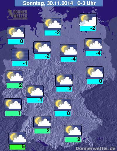 Bis zum Anfang der kommenden Woche (und auch noch darüber hinaus) sinken die Nachttemperaturen stetig ab. Richtig kalt wird es dann vor allem entlang der Mittelgebirge, in der Nacht auf Dienstag sinkt das Quecksilber hier örtlich auf Werte um -6 Grad C.