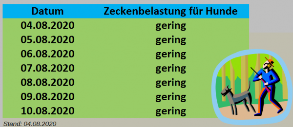 Das trockene Wetter in der zweiten Wochenhälfte dämmt den Zeckenbesatz im Unterholz ein - wer auf Nummer sicher gehen möchte, sollte trotzdem die notwendigen Schutzmaßnahmen vor den Blutsaugern treffen. Dazu gehört auch das gründliche Absuchen von Mensch und Tier nach dem Spaziergang im Wald.
