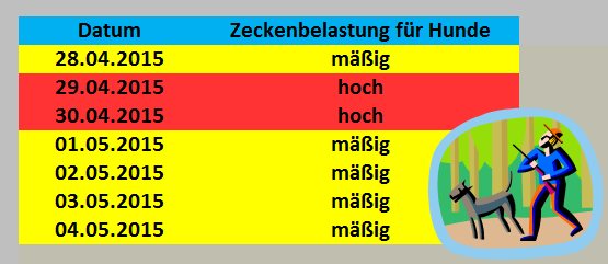 Die Regenfälle der letzten Tage haben das Unterholz durchnässt. Tagsüber werden dabei aber immer noch Temperaturen um 15 - 20 Grad C erreicht, so dass die Zecken meist aktiv sind. Suchen Sie den Hund nach Waldspaziergängen immer auf die Blutsauger ab!