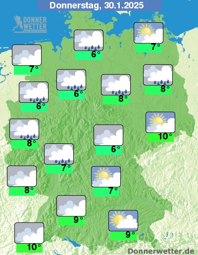 Am Donnerstag zeigt sich der Himmel über dem Westen, Norden und Nordwesten stark bewölkt, dabei faällt lokal etwas Regen. In den übrigen Landesteilen zeigt sich der Himmel nach Nebelauflösung teils heiter, teils wolkig und es bleibt weitgehend trocken.