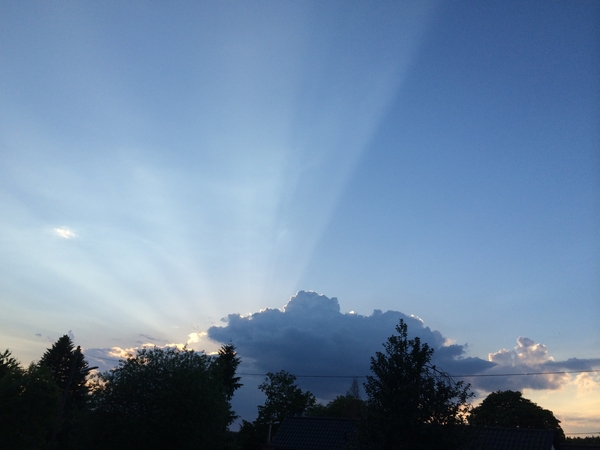 Erste Schauer am Rhein, an der Grenze zu den Niederlanden, Belgien und Frankreich. Die Sonne setzt sich aber wieder durch. Später im Land verbreitet Schauer und Gewitter.