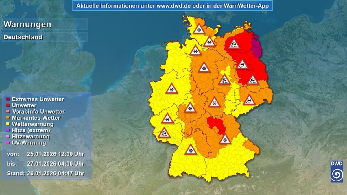 Für den Nordosten Deutschlands gilt derzeit eine Warnung vor extremen Unwettern: In der Uckermark haben sich stellenweise dicke Eisschichten auf Wegen und Straßen gebildet, was zu erheblichen Verkehrsbehinderungen führt.