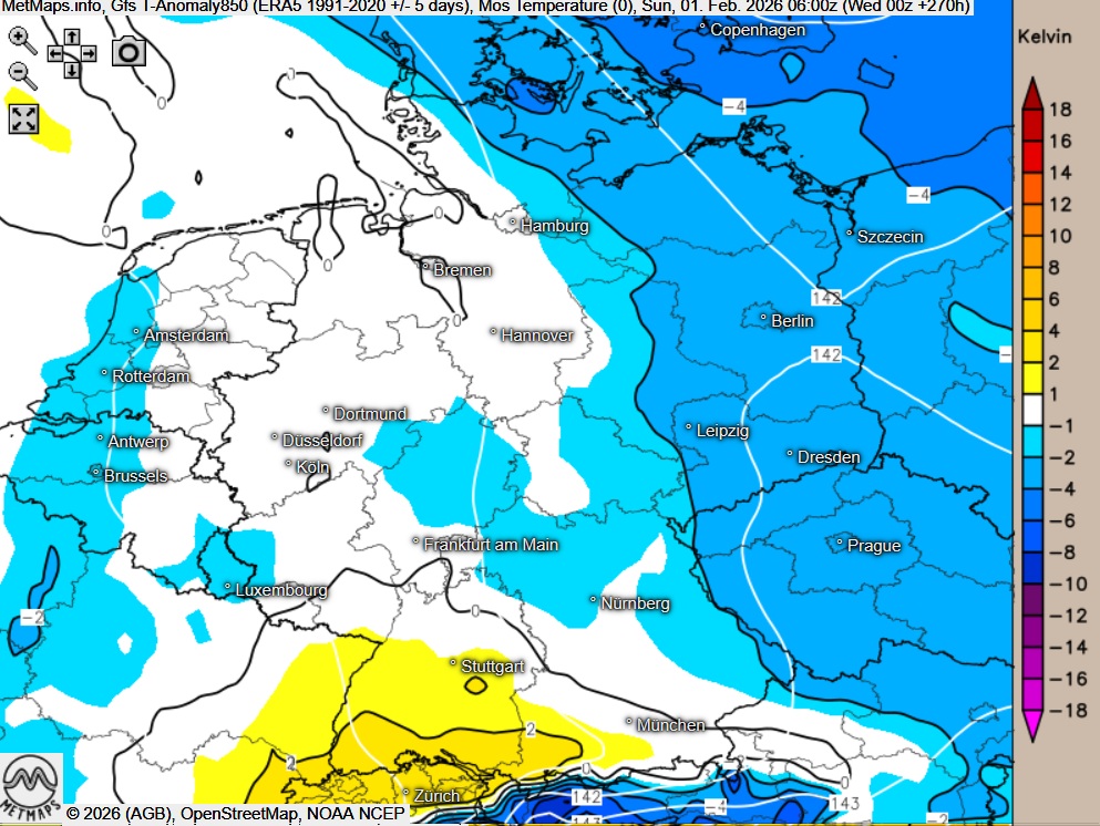 Nach einem Wetter-Auf-und-Ab in der kommenden Woche stehen auch die Prognosen für die Tage um den Monatswechsel noch auf sehr wackeligen Beinen: So geht das US-amerikanische GFS-Modell weiterhin von einem deutlich kälteren Start in den Februar aus als das europäische ECMWF-Modell, welches eher moderatere Temperaturen prognostiziert.