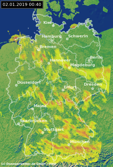 Radarbild von Mittwoch, 02.01.2019 um 00.40 Uhr