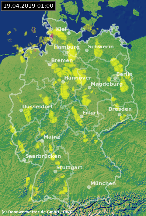 Radarbild von Karfreitag, 19.04.2019 um 01.00 Uhr