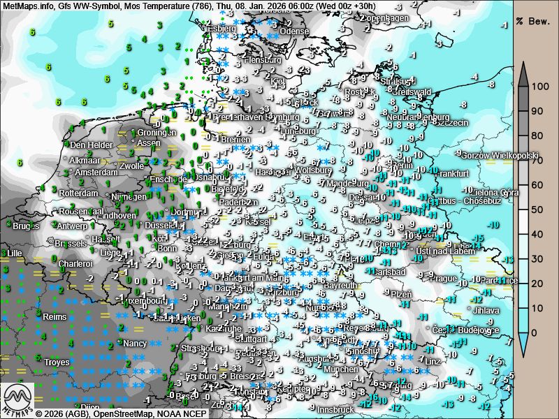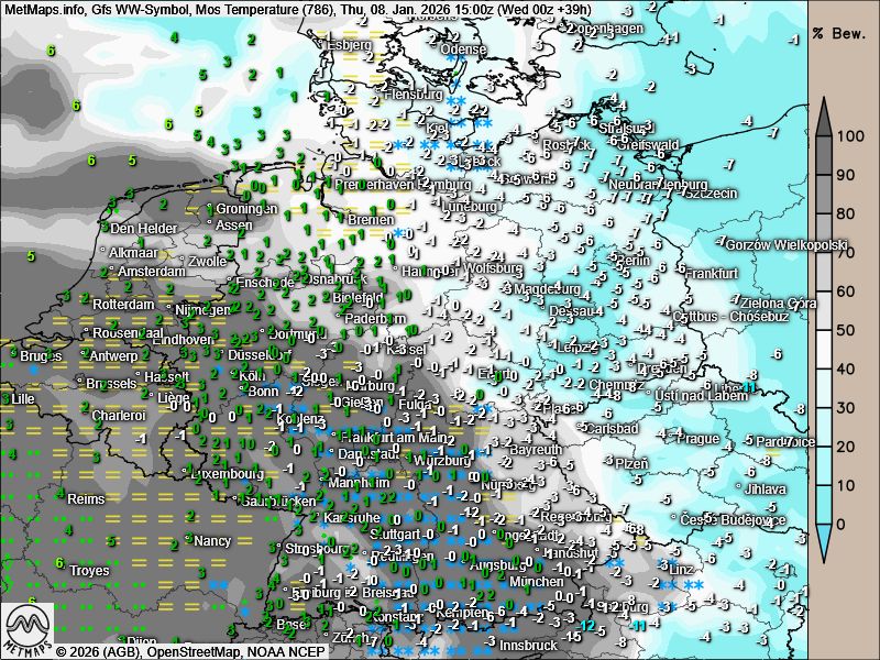 Wetter- / Temperaturkarte Donnerstagmorgen nach GFS