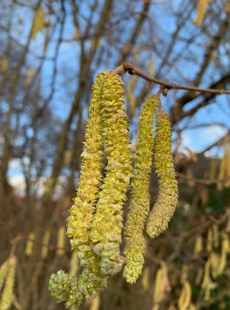 Das Foto zeigt eine stäubende Hasel im Rheinland am dritten Adventssonntag.