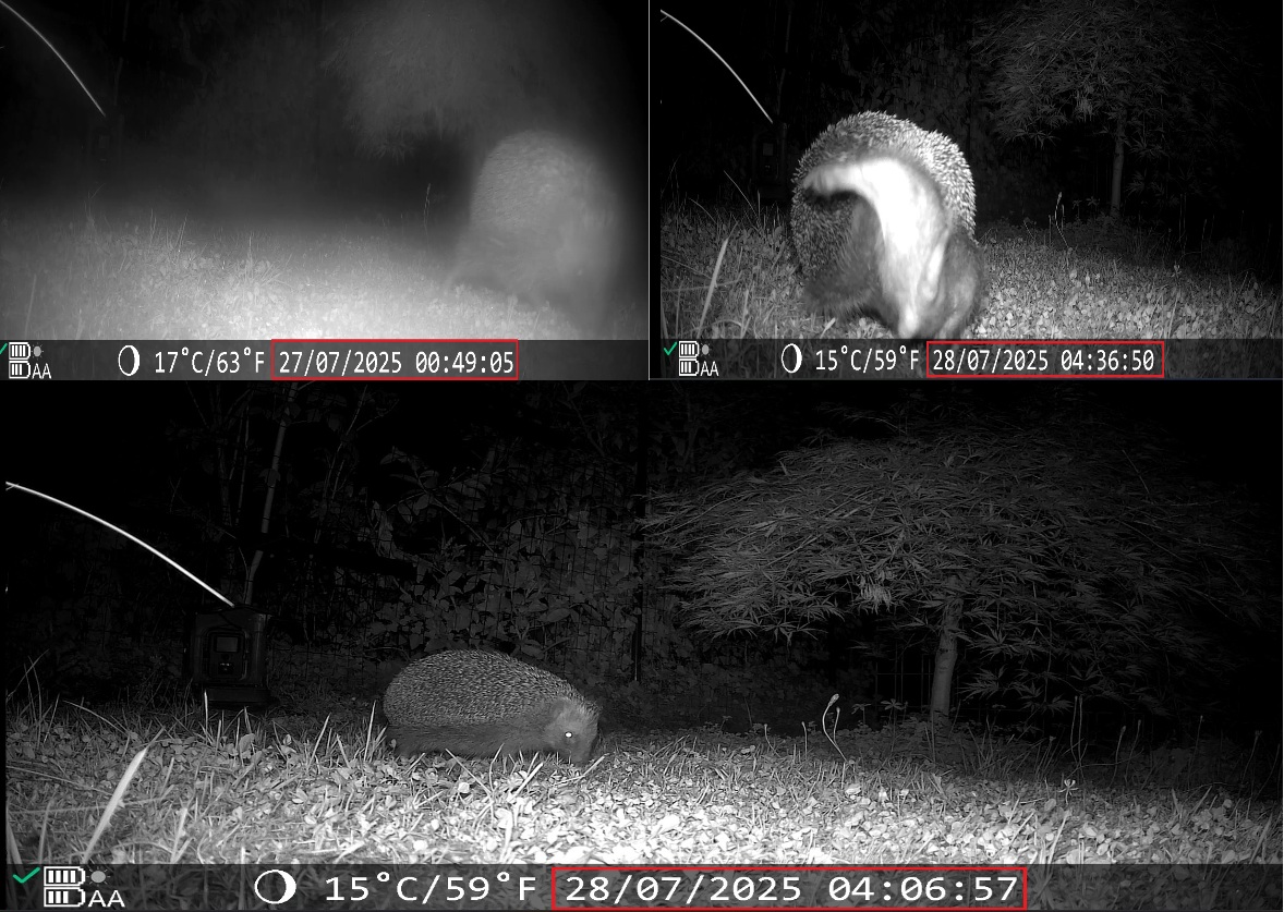 Unsere Wildkamera filmt den kleinen Gartenbewohner regelmäßig bei seinen nächtlichen Streifzügen:
