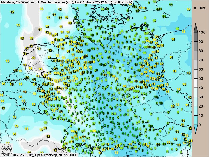 Durch die Wolken gehen die Nachttemperaturen im Westen dabei nicht ganz so stark zurück. In Bayern und Sachsen sinken die Werte dagegen in den Frostbereich ab.