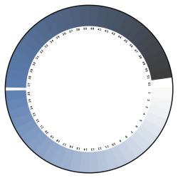 Es müsste ein Messinstrument geben, mit dem man das Blau des Himmels einordnen kann. Er erfand das Cyanometer, welches nichts anderes ist, als eine 54-teilige Farbskala auf einem kleinen Blatt Papier, wo alle möglichen blauen Himmelsfarben, von weiß bis violettblau abgebildet sind. Diese hält man gegen den Himmel und vergleicht das Blau auf der Skala mit dem Blau des Himmels und bestimmt den Wert.