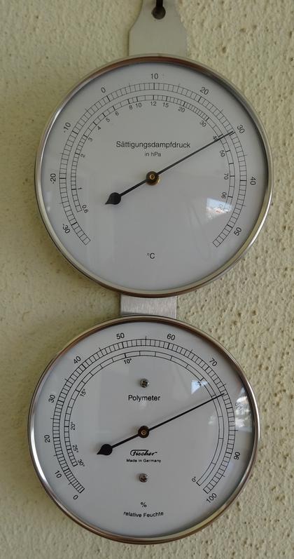Neben der Temperatur wird mit einem zweiten Instrument die relative Luftfeuchtigkeit gemessen.